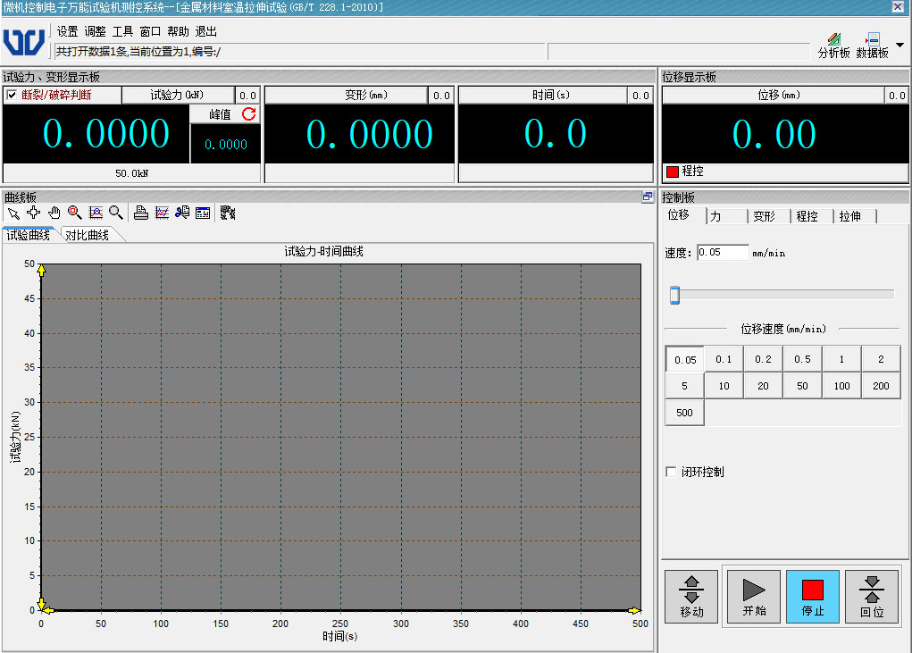 (3)內置式控制器,保證了該試驗機可以實現試驗力、試樣變形和橫梁位移等參量的閉環控制,可實現等速試驗力、等速位移、等速應變、等速載荷循環、等速變形循環等試驗。各種控制模式之間可以平滑切換。
