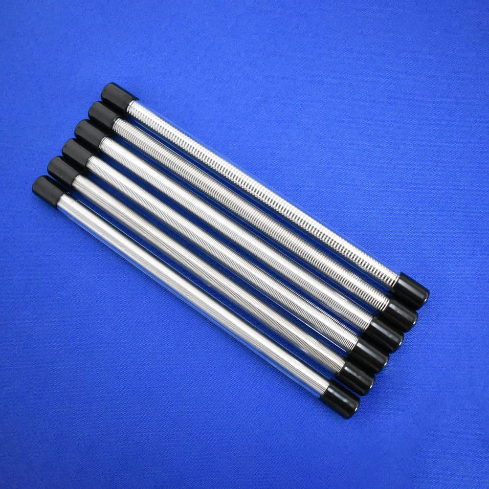 線棒主要適用于涂布液粘稠度較低、流平性較好的涂布,主要分為繞線式和擠壓式。擠壓式涂布棒是在不銹鋼表面擠壓出的規律的溝槽,靠溝槽之間的寬度和深度來控制涂布量的大小,擠壓的線棒在使用過程中不容易堵塞、方便清理;繞線式涂布棒是用不同直徑的不銹鋼鋼絲纏繞在一定直徑和長度的不銹鋼鋼棒上,利用鋼絲之間的間隙制備不同厚度的涂膜。繞線式和擠壓式之間的主要區別在于:擠壓式更方便清洗,繞線式能在長時間保持一致性。