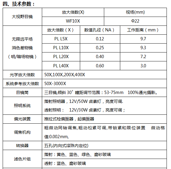配置落射與透射照明采用“柯勒”照明系統系統,能分別對不透明物體或透明物體進行顯微觀察上光源采用翻蓋式12V50W鹵素燈箱,更換燈炮安全便捷,下光源采用12V30W鹵素燈,加裝散熱片。